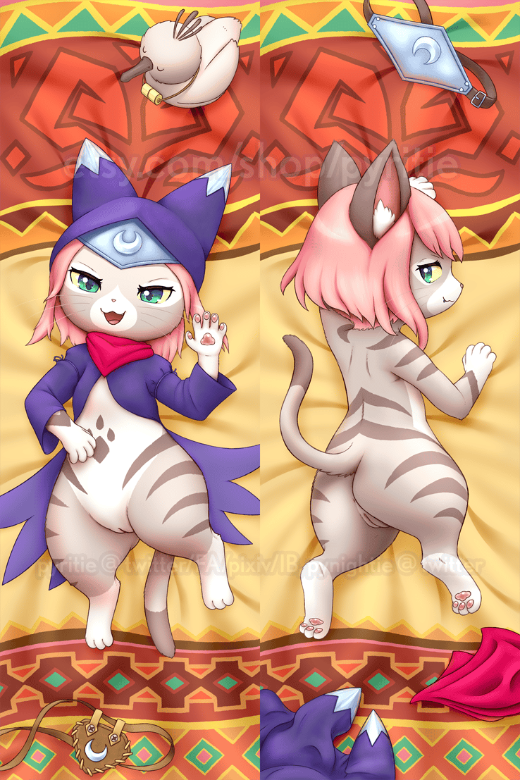 This is a dakimakura/body pillow cover of Tsukino from Monster Hunter Stories 2: Wings of Ruin.